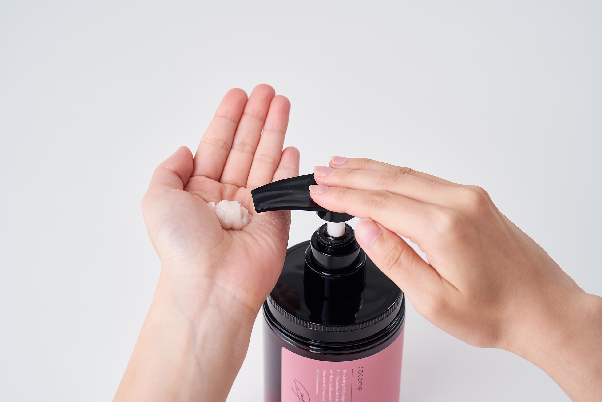 取 1 至 2 泵的洗髮精於手中,用指尖按摩至頭皮,重點按摩頭頂頭皮,然後將 1 泵添加至後腦勺。再添加 1-3 泵,然後將其混合到發尾。請根據頭髮的長度和數量調整使用量。
