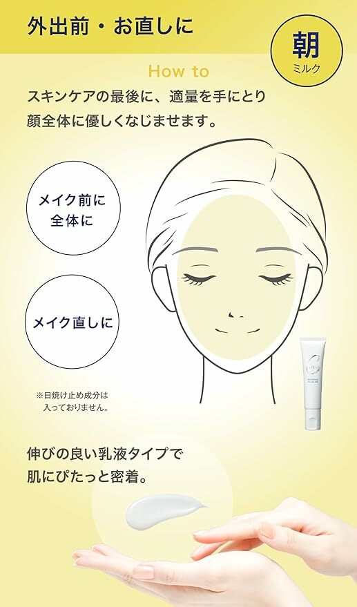 含有維生素C**氨甲環酸**雙重有效成分的藥用精華乳。可在外出前輕輕塗抹,或白天化妝後使用,以對抗乾燥。 *L-抗壞血酸2-葡萄糖苷(抑制黑色素生成,預防斑點和雀斑) **針對皮膚刺激和刺激【準藥品】