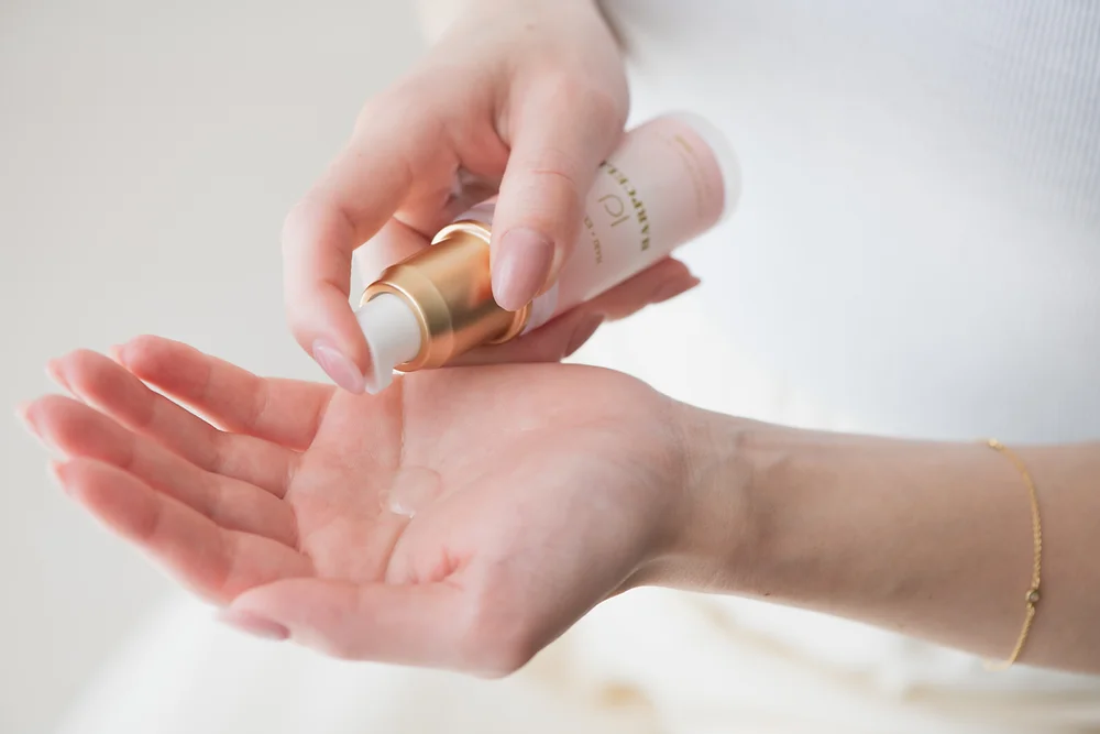 (3)待精華液被皮膚吸收後,依皮膚狀況添加一層面霜或其他乳霜。