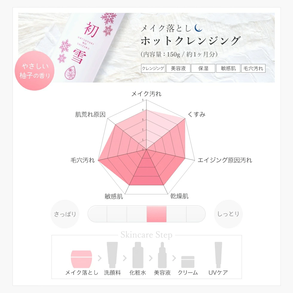 溫暖的效果讓您放鬆,只需將柔軟的凝膠塗抹在肌膚上,它就會深入毛孔,溶解彩妝和污垢。