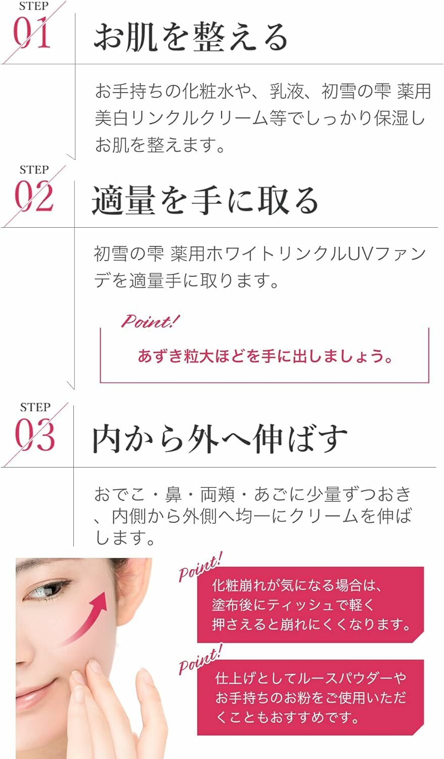 含有超過73%的美容成分,對肌膚溫和,還具有日本最高等級的紫外線防護(SPF50/PA++++),化妝同時可改善皺紋並防止瑕疵的UV 粉底。