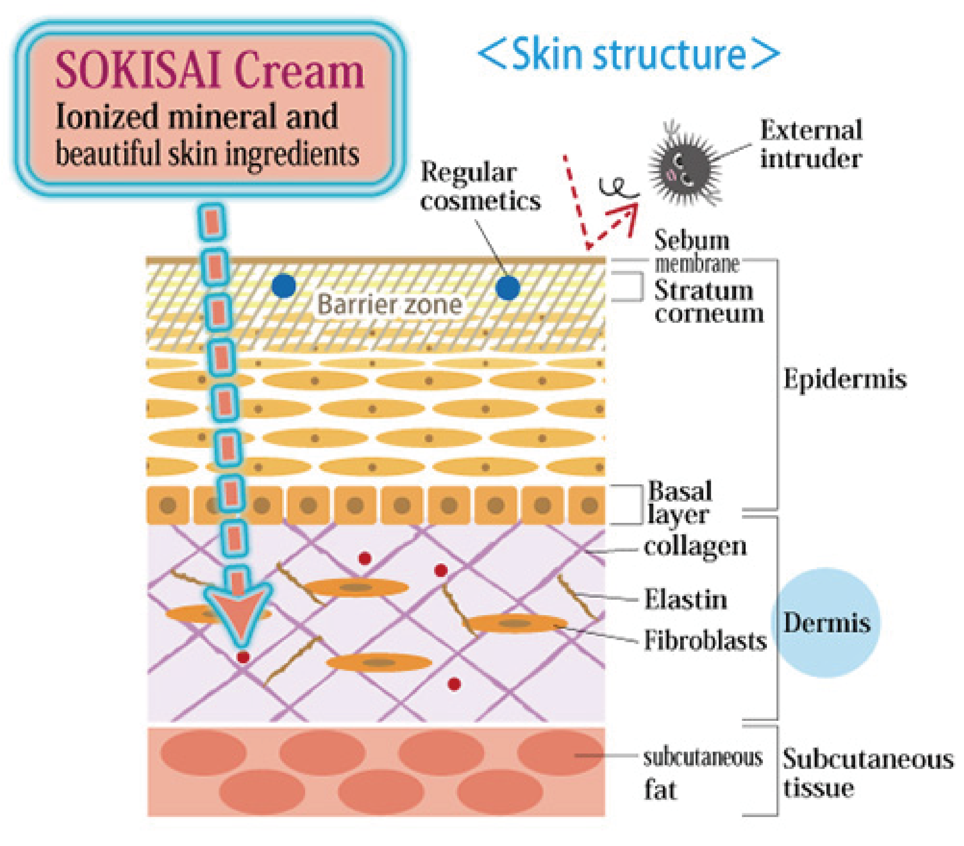 高濃度礦物離子通過細胞膜進入新生皮膚細胞所在的“真皮層”,增加細胞更新。